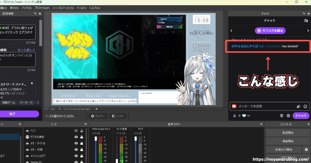 このOBSにゲーム画面僕の姿を載せたり、時計を追加したり、コメントが見えるようにしているよ!