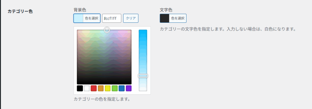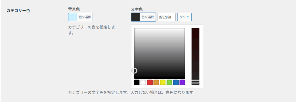 『カテゴリー色』という項目の【背景色】からカテゴリーラベルの色を変更することができる。文字の色も変更できる。